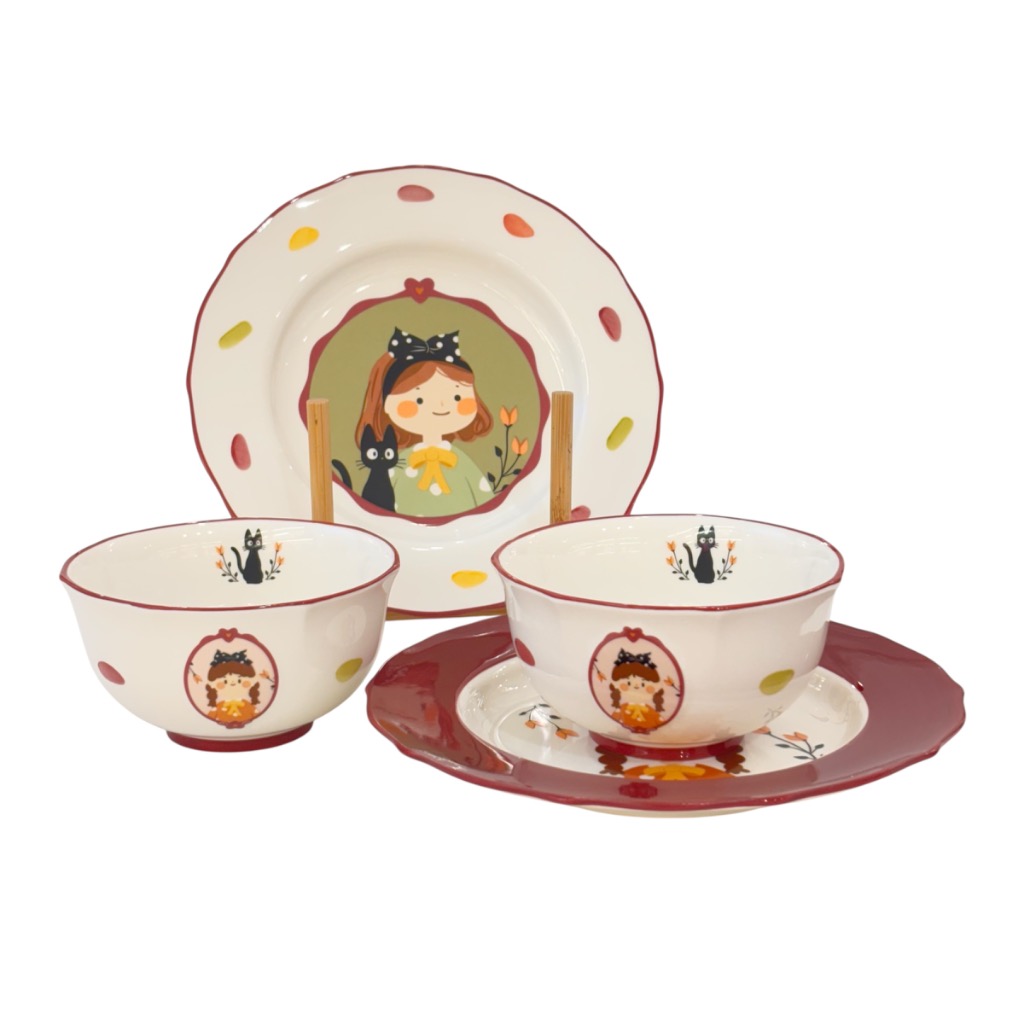 ست بشقاب و پیاله طرح دختر قرمز